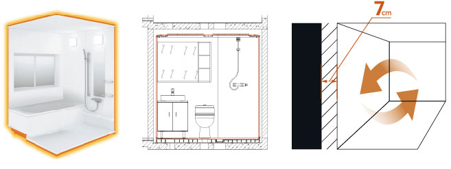 Insulation Interlayer Design Between the panel and the wall, there is a 7cm thick interlayer which keep the heat in the bathroom, even in the cold winter.