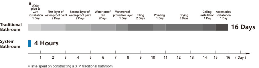 All SYSWO system bathroom parts are produced in factories, and to assemble on-site in a standard and high-efficient way.