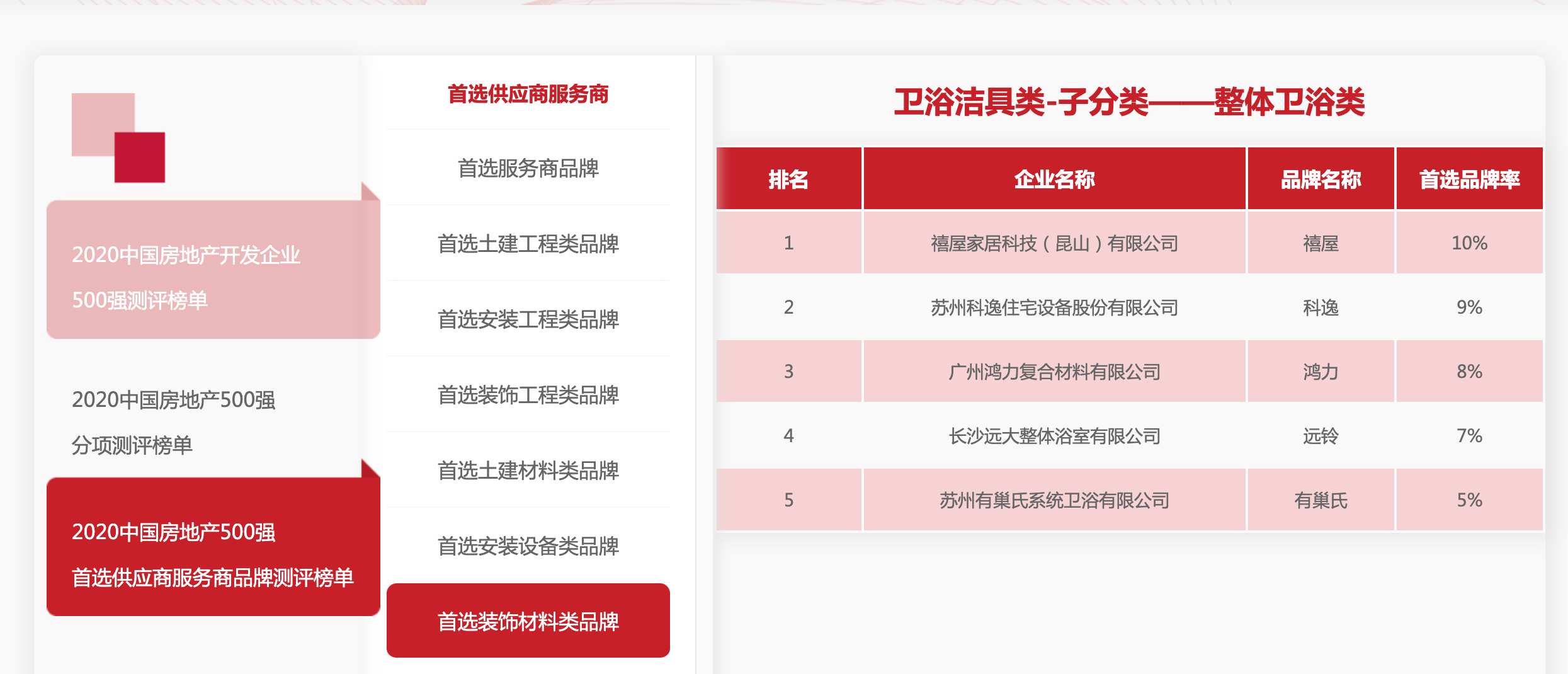 2020年3月18日,中國(guó)房地產(chǎn)500強(qiáng)測(cè)評(píng)成果通過(guò)線上發(fā)布的方式圓滿落幕。禧屋以10%的品牌率問(wèn)鼎!蟬聯(lián)“2019中國(guó)房地產(chǎn)開(kāi)發(fā)商企業(yè)500強(qiáng)整體衛(wèi)浴類品牌TOP5”榜首。